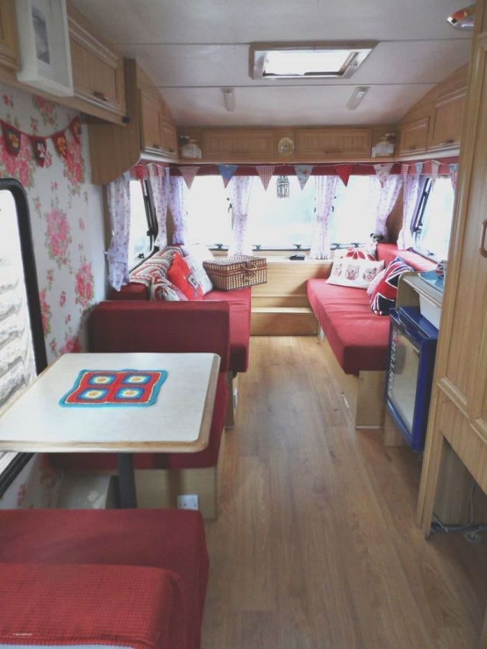 Hemos visto varios ejemplos de furgonetas camperizadas donde ha predominado el color blanco, ya que este color hace el espacio reducido más amplio. El segundo color que más hemos visto que ha predominado es el azul, ya sea más claro o un poco más oscuro. Hemos querido enseñarte este tipo de furgoneta camperizada con el color rojo junto al blanco para que veas que cualquier color queda también muy bien. Ahora el rojo va a transmitir a tu espacio una gran fuerza y alegría, el dueño de esta furgoneta demuestra que tiene personalidad. Lo ha combinado con unos muebles y unos maleteros superiores de madera y una pared blanca con flores rojas, y ha colgado unos banderines que también llevan el color rojo. Es un espacio sencillo pero decorado con buen gusto.