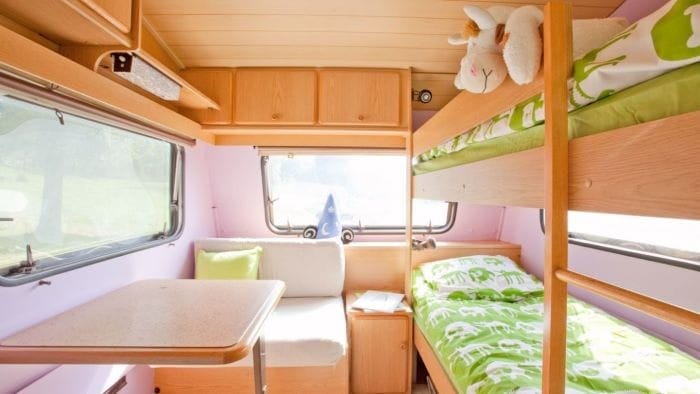 Ideal para cuando sois más de dos personas, ya sea porque tienes niños o porque vas con tu familia (o amigos) de vacaciones. La litera es un mueble perfecto para una furgoneta camperizada, ya que ahorras espacio y lo aprovechas muy bien. Los maleteros en la parte superior de la furgoneta es otro mueble que nos va a venir genial para almacenar cosas.