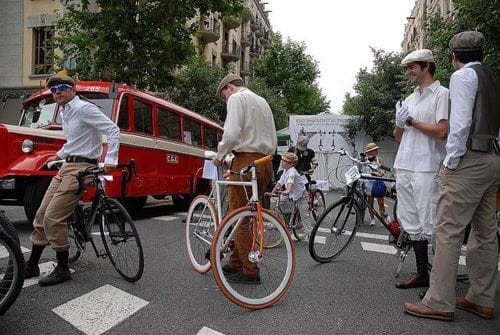 Para nuestra sorpresa y coincidiendo con esta fecha, se celebra la 3ª Bicicletada Modernista, en la que los participantes recorren las calles de Barcelona vestidos de época, a través de los edificios más populares, sorprendiendo a vecinos y turistas.