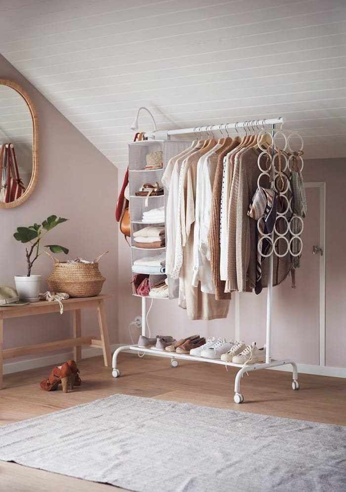 A continuación, IKEA también trae como novedad en el catálogo 2021 un espejo LINDBYN, con reborde de aluminio. Podrás colgarlo en cualquier pared para que puedas verte antes de salir de casa. Éste, tiene el borde negro por lo que pega con cualquier color que tengas en tu dormitorio. A la derecha del espejo, vemos los ganchos SKUGGIS, de 5€ cada uno hechos de bambú con barniz incoloro. Ideal para colocar varios de ellos seguidos para colgar varias prendas de abrigo. Así, tendrás tu ropa colocada y ubicada en el mismo sitio.