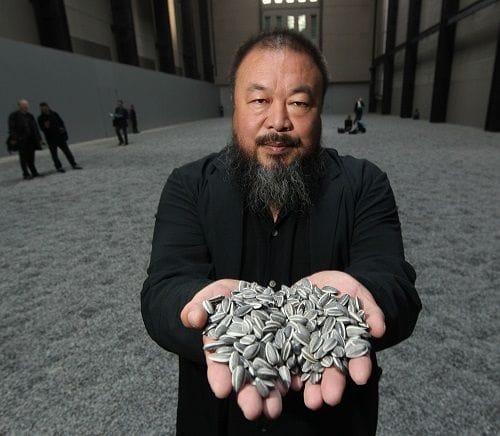 Después de esta impresionante obra el afán por exponer del Ai Weiwei fue en aumento. En 2010 realizó una de las exposiciones más famosas que se recuerdan. Con el trabajo de 1600 artesanos de la ciudad de Jingdezhen, una disciplina y paciencia sólo propia del mundo oriental, consiguió llenar la sala de turbinas del museo Tate Modern de Londres con cien millones de pequeñas pipas de porcelana hechas y decoradas a mano. Su obra Sunflower sedds fue admirada por los críticos como esa unión entre el minucioso trabajo tradicional y el nuevo fenómeno económico reflejado en su mayor producto de exportación. Una obra que podía tocarse, sentirse y escuchare, una obra viva, con una, no muy escondida, critica social y política.