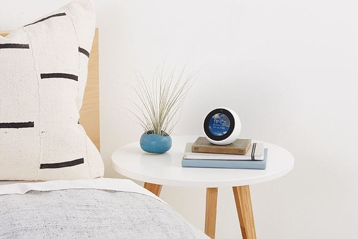 Disponible en blanco o negro, el Echo Spot, ofrece todos los puntos positivos de Alexa con la comodidad añadida de una pantalla circular para que se puedan mostrar las cosas de forma visual. El tamaño y el ángulo de visión de la pantalla hacen que el Echo Spot sea ideal para usarlo sobre un escritorio o mesita de noche para que puedas encender y apagar tus luces inteligentes compatibles, conocer el tiempo, comprobar la hora, despertarte con las alarmas de música y mucho más.