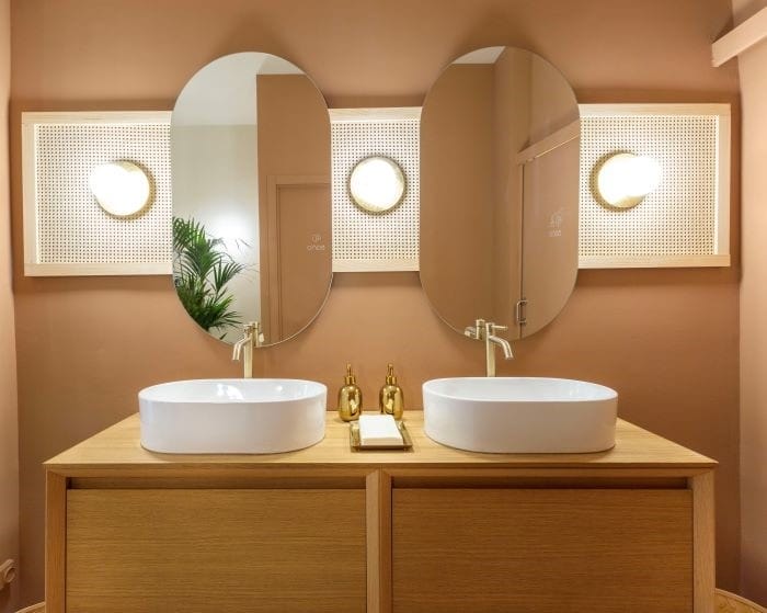 Al fondo, integrado a la sala, un lavabo doble; porque ahora más que nunca, lavarse las manos es fundamental y debemos hacer de este un hábito un poco más social, agradable y hasta glamuroso.