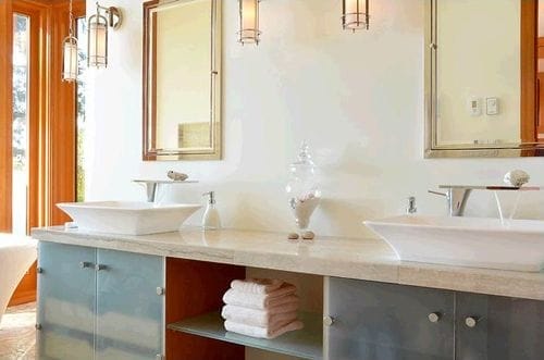 El baño de invitados, localizado en la planta baja también cuenta con un cuidado y sencillo diseño.