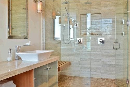 Gracias a las puertas correderas y a los ventanales, este baño goza de unas excelentes vistas al océano de las que se podrá disfrutar al tiempo que se toma un baño o ducha relajante.