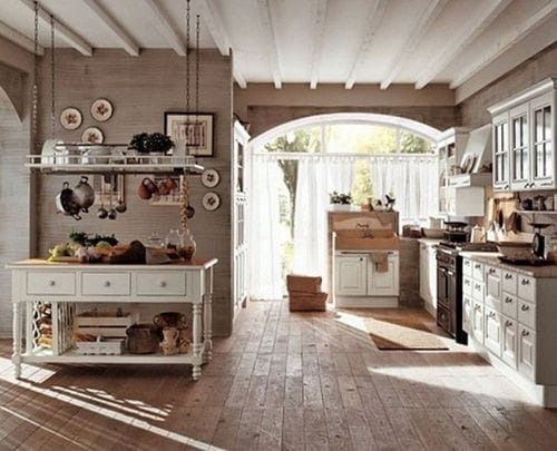 El country romántico recoge las características del country natural, pero destaca por el uso de elementos como rejillas, banquillos o vitrinas.