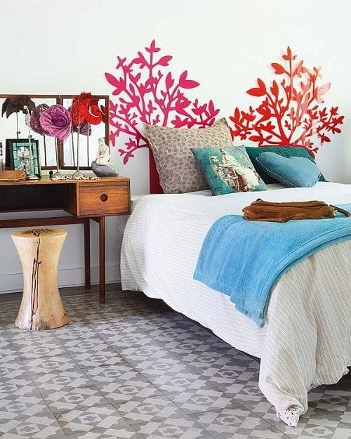 Pero si lo que quieres es dar un paso más allá, el abanico de opciones que nos propone el estilo modernista nos dejará boquiabiertos. Y uno de los mayores cambios se produce en el cabecero. O en el no cabecero, porque cada vez es más usual encontrarnos camas donde el cabecero brille por su ausencia. En su lugar nos proponen colocar una balda en el frente para aprovechar la pared tras la cama. Nos servirá para colocar adornos, libros… Será un apoyo más a nuestras mesitas de noche.