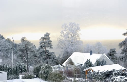 Una casa que nos transporta a paisajes invernales por el uso de colores fríos compensados por la calidez de los materiales naturales como la madera o los objetos de apariencia DIY.
