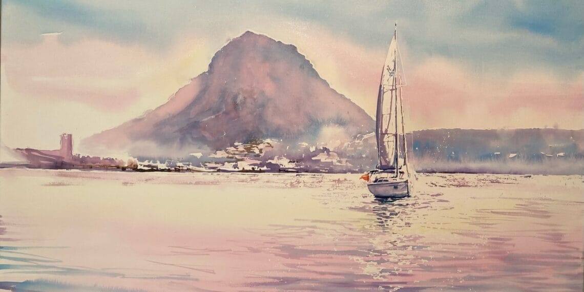 Each work is a journey to the heart of Jávea, revealing its Mediterranean soul. The artist has captured the intense blues of the sea, the salty aromas, and the characteristic light of the region. To add a deeper dimension to her work, she has adopted a more active technique, using seawater in her watercolors and incorporating marine sounds during the creative process.