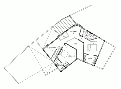 La forma del edificio está inspirada en la ubicación marítima del acantilado, una composición de bloques angulares que permite la entrada de luz y el acceso a las vistas desde las diferentes estancias de la vivienda. Aunque por la noche invade la oscuridad, esta construcción ilumina la bahía desde la parte superior del acantilado.
