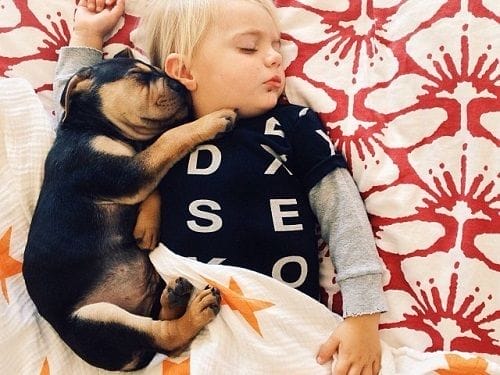 Como vimos en el post anterior, en el que Harper y Lola crecían mano a mano compartiendo todo tipo de experiencias, los perros confirman su posición como mejor amigo del hombre. Sólo hay que ver las curiosas posiciones que adoptan, encajando a la perfección entre ellos. Según duerma el pequeño Beau, Theo adapta su cuerpo como si de un puzzle se tratara.