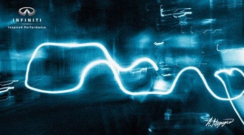 Adam Rehak, Curvas Infiniti. De Republica Checa llega el efecto óptico de Adam. Mediante luces LED suspendidas en el aire que siguen las líneas del automóvil y un espejo en la parte posterior se crea la ilusión de que el coche está en movimiento.
