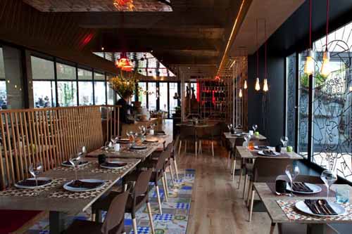 Se trata de un restaurante con un diseño cosmopolita y urbano tanto en su interior como en su exterior. Una decoración con gusto y pensando al milímetro en cada detalle, desde los manteles de las mesas, hasta los uniformes de los camareros, diseñados por Juanjo Oliva.