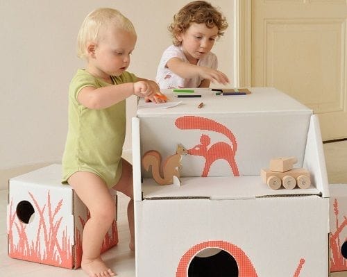 Los más pequeños también pueden formar parte del proceso de diseño y customización de este tipo de muebles, de esta manera se desarrolla su creatividad, se estimulan sus capacidades psicomotoras y se fomentan comportamientos autónomos e independientes. Y si no buscáis tanto que participen en este proceso sino en el ahorro económico y la despreocupación, podéis optar por muebles y juguetes de cartón para la habitación de vuestros hijos. En este caso, evitáis que puedan hacerse daño y no os preocupará tanto que puedan romperlos.