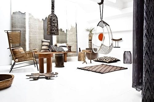 La decoración étnica también tiene cabida. Con un añadido chic que reside en el cúmulo de accesorios, cada cual más especial, de estilo tribal sobre un fondo totalmente blanco para evitar el exceso. Sin lugar a dudas, la guinda original la pone el asiento colgante, en forma de huevo, tejido a mano.