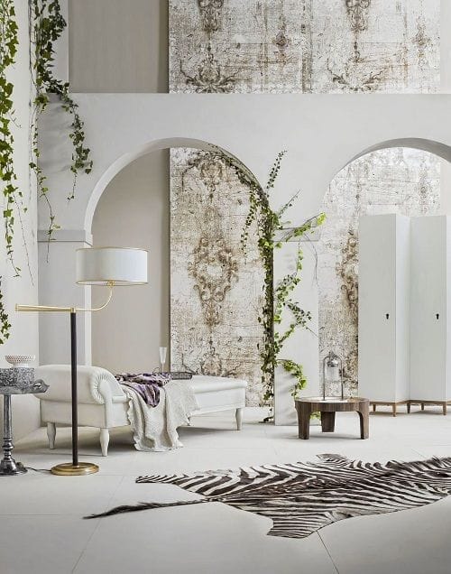 Si por el contrario deseamos espacios armónicos con cierta estética bohemia y decadente, Bruno Tarsia nos transporta a la antigua Grecia con la introducción de columnas, suelos de mármol con mosaicos integrados o camas con dosel. Nos encanta el juego de contrastes decorativos que consigue de forma natural.