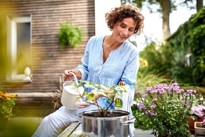 Por el momento, la gama cuenta con dos productos estrella para COMPO, un substrato sin turba y un fertilizante líquido universales. El substrato universal está indicado para el cultivo de hortalizas, frutas, plantas aromáticas y ornamentales, ya sea en macetas para balcones o para plantar directamente en el suelo. Dispone de un embalaje procedente de plástico de post-consumo y tintas de bajo impacto para la impresión, además está compuesto por materias primas 100% de origen vegetal: compostaje verde y corteza compostada.