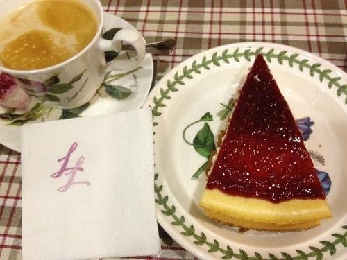 La paleta de colores en tonos oscuros cobra importancia en los textiles, los cuales optan por estampados damascos o florales. No faltan artículos y obras de arte que decoran las paredes así como las tradicionales «lámparas araña» coronando los altos techos. Aunque algo recargado, resulta perfecto para evadirse y viajar kilómetros de distancia con un té en la mano y deliciosas pastas en la otra.