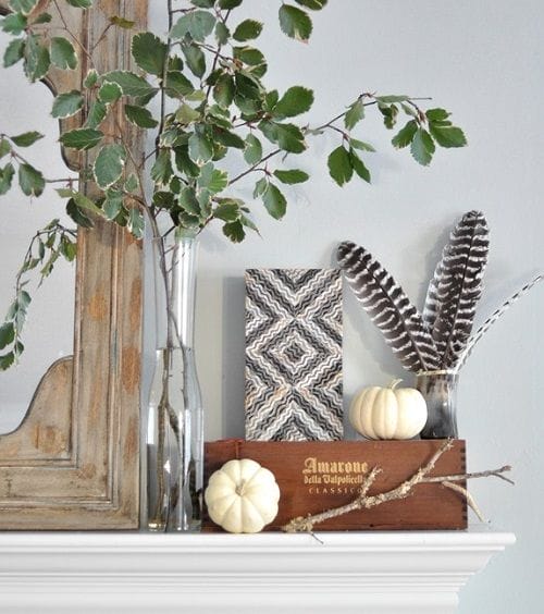 Los arreglos florales pasan de ser frescos, propios de la primavera y el verano, a convertirse en ramilletes de plantas secas. Un DIY muy original es el de crear adornos colgantes a base de hojas como el que os mostramos en este comedor. Cortezas, ramas, plumas… todo es válido, sólo hay que echarle imaginación.