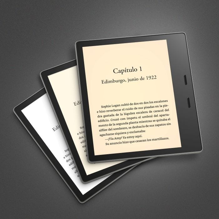 Para una experiencia de lectura premium, Kindle Oasis cuenta con una pantalla de 7 pulgadas también sin reflejo, diseño ergonómico con botones para pasar de página, perfectos para leer con una sola mano; esto además de luz frontal cálida ajustable, que permite cambiar el tono de la pantalla de blanco a ámbar para una menor fatiga visual, y resistencia al agua (IPX8).