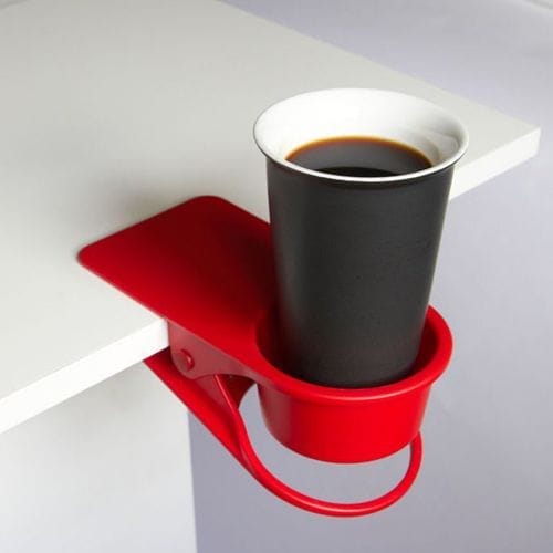 Para aquellos que no pueden evitar tomarse el café mientras trabajan, un portavasos como éste puede ser muy útil.