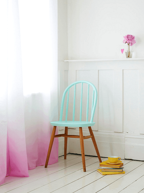 La idea es pintar los muebles como si hubieran sido sumergidos en cubos de pintura, solo una parte. Podemos pintar sus patas, o bien hacerlo al revés, desde arriba y dejando en su color original el soporte. El resultado es genial y totalmente original.