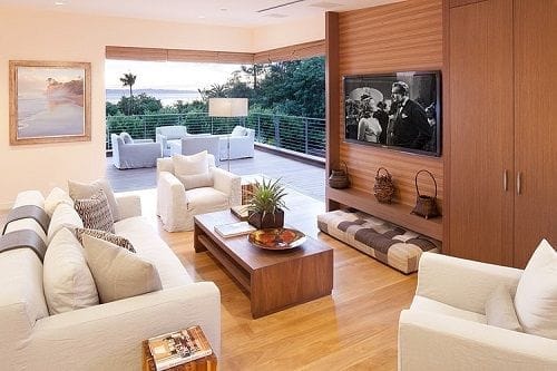 El estilo zen de la casa cobra protagonismo en el exterior, sobre todo en los jardines que rodean la villa privada. Se compone de un revestimiento y suelo de madera que se mantiene en todo momento, creando un estilo que recuerda a las cabañas africanas. También el interior emplea la madera y los colores cálidos, que quedan combinados con suaves tonos grises y blancos radiantes.