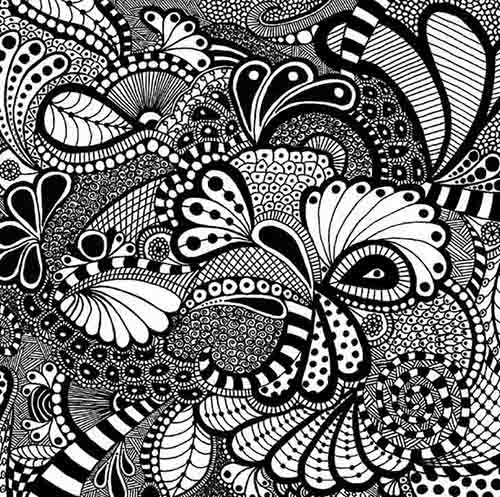 A base de repetirlos y combinarlos, uniendo la concentración que el trabajo metódico proporciona y la ligereza mental que surge de dibujar espontáneamente, podemos ir creando toda clase de formas e imágenes, por lo general en blanco y negro y sobre papel o cartulina, aunque también podemos usar colores y otros soportes.